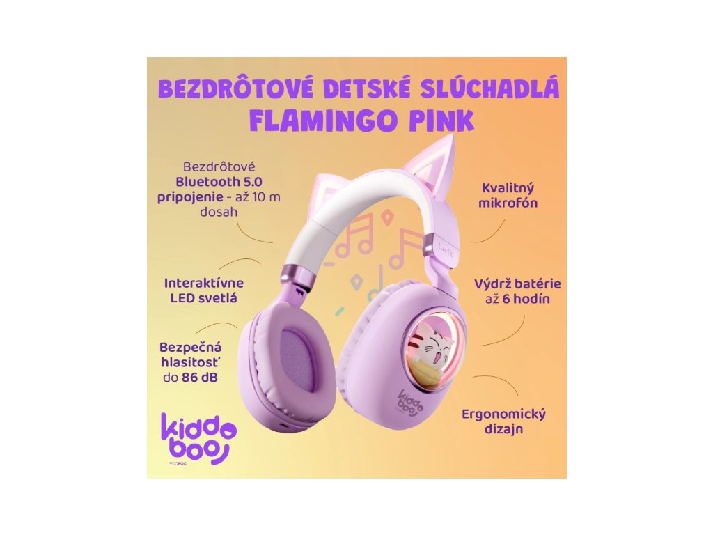 Kiddoboo Bezdrôtové detské slúchadlá Flamingo Pink