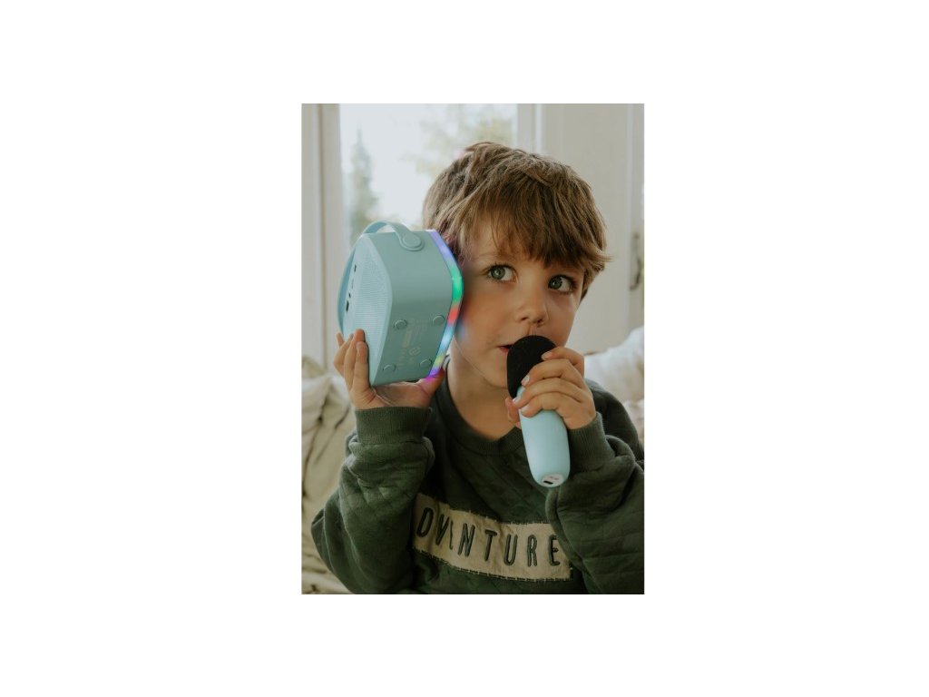 Prenosný reproduktor môžu deti zobrať kamkoľvek - na záhradu, do parku alebo na dovolenku. Tento šikovný reproduktor nielenže hrá skvelú hudbu, ale obsahuje aj mikrofóny, takže deti môžu spievať a baviť sa s priateľmi na každom mieste. Vďaka gumovému povrchu a praktickej silikónovej šnúrke je karaoke set nielen štýlový, ale aj odolný. Navyše, je vyrobený z recyklovaného plastu, takže chráni aj našu planétu.