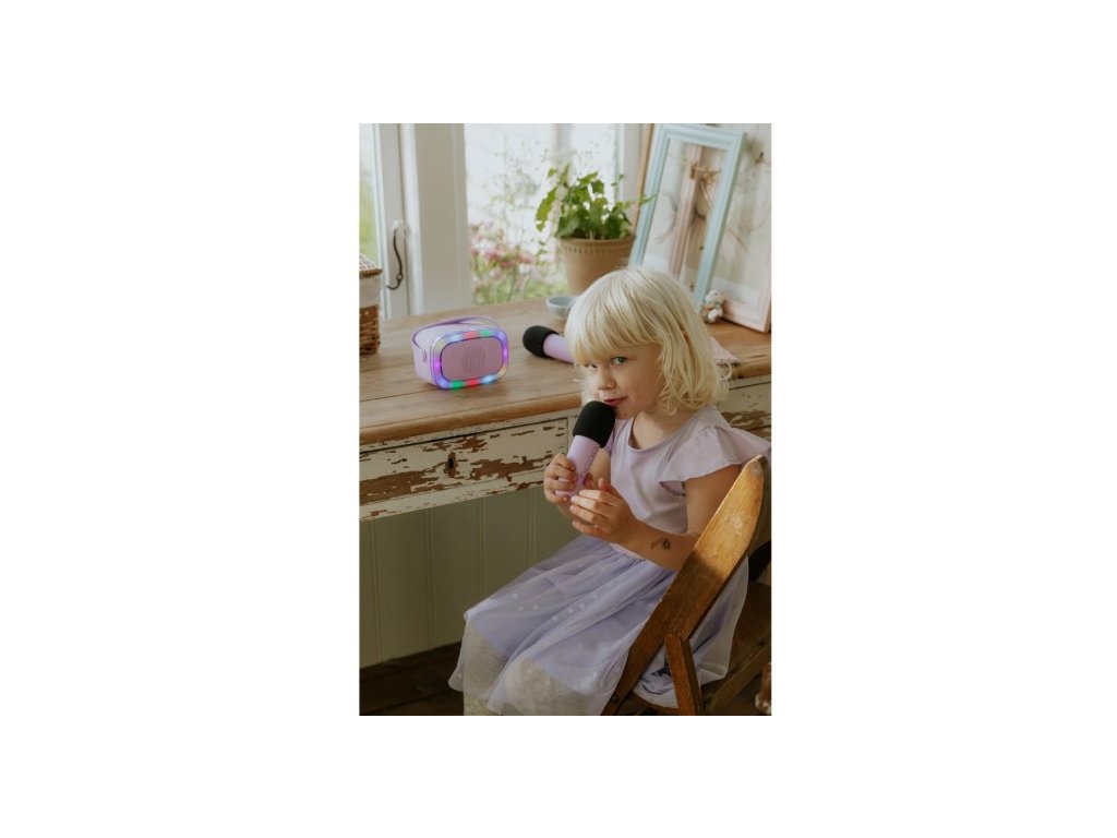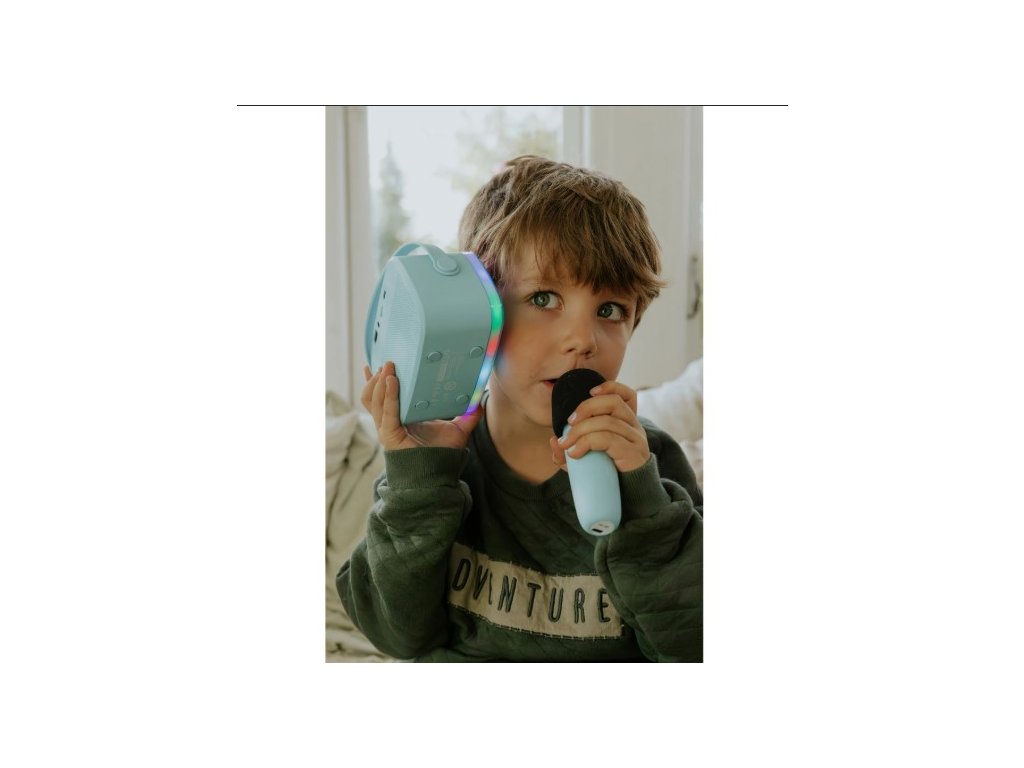 Prenosný reproduktor môžu deti zobrať kamkoľvek - na záhradu, do parku alebo na dovolenku. Tento šikovný reproduktor nielenže hrá skvelú hudbu, ale obsahuje aj mikrofóny, takže deti môžu spievať a baviť sa s priateľmi na každom mieste. Vďaka gumovému povrchu a praktickej silikónovej šnúrke je karaoke set nielen štýlový, ale aj odolný. Navyše, je vyrobený z recyklovaného plastu, takže chráni aj našu planétu.
