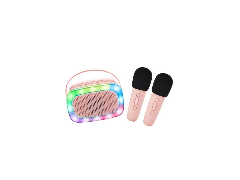 Ružový karaoke set od Lalarma je perfektný pre každé dieťa, ktoré miluje hudbu. S Bluetooth pripojením ho môžete ľahko spojiť so svojím smartfónom alebo tabletom a púšťať si hudbu priamo z obľúbeného zariadenia alebo si svoje obľúbené pesničky môžete nahrať na TF/SD kartu. Vďaka 2 mikrofónom a žiarivým LED svetlám, s 5 svetelnými režimami, bude tento karaoke set hlavnou hviezdou každej párty. Reproduktor ponúka štyri zábavné hlasové efekty, ktoré zaisťujú nekonečnú zábavu pre vaše malé talenty.