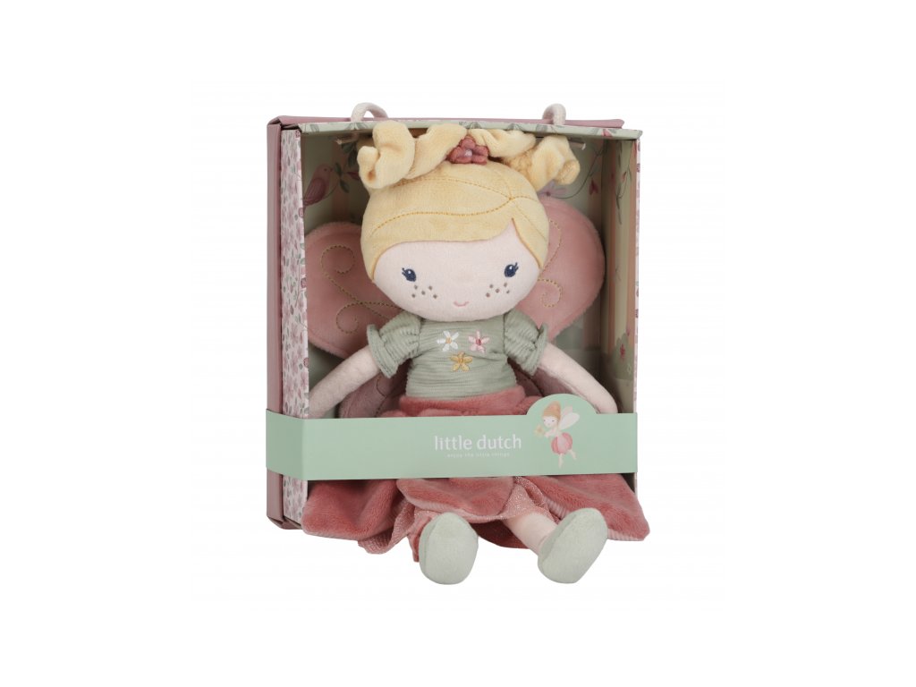 Bábika dodávaná v krásnom darčekovom boxe je súčasťou dizajnovej kolekcie hračiek a doplnkov Little Dutch Fairy Garden inšpirovanej životom na záhrade.