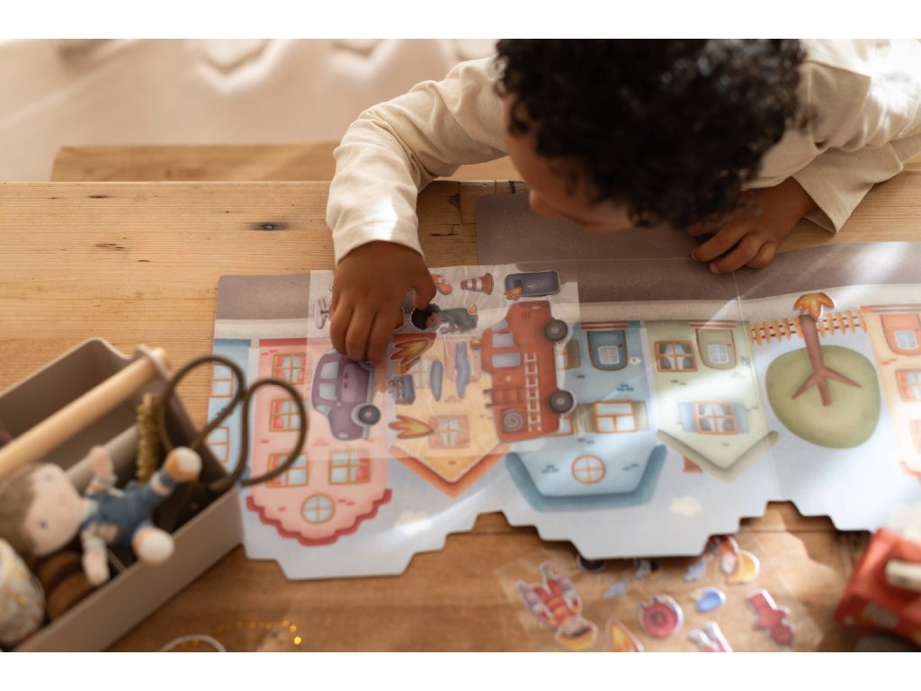 Podporte detskú fantáziu s touto sadou opakovane použiteľných samolepiek Little Dutch. Deti môžu znova a znova vyzdobiť hasičskú stanicu a ulice mesta viac ako štyridsiatimi veselými 3D samolepkami a zakaždým vytvoriť iný príbeh.