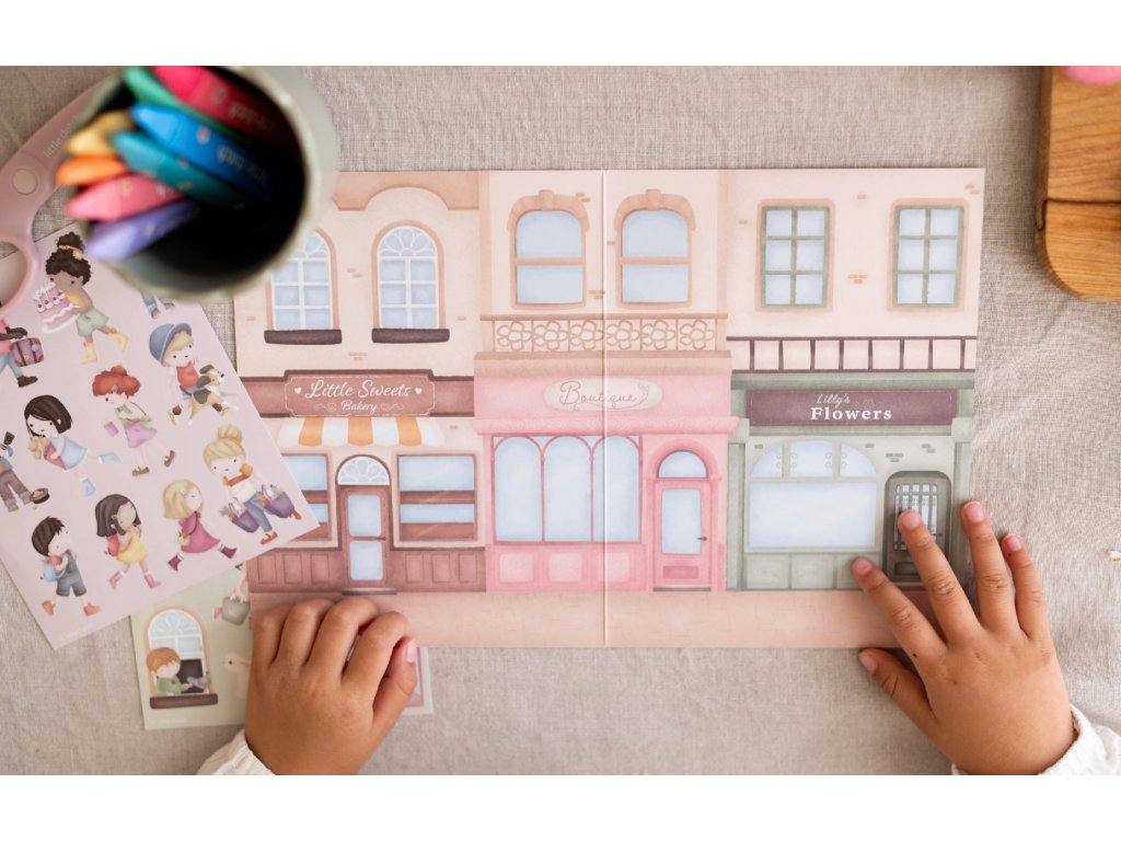Fantázia vášho dieťaťa ožije s touto veselou samolepkovou knižkou Little Dutch. Obsahuje viac ako 90 farebných samolepiek s témou nakupovania a obojstranné herné pozadie, na ktorom si deti môžu vytvárať vlastné príbehy, scény a dobrodružstvá.
