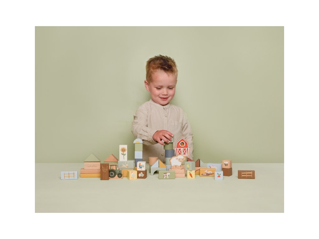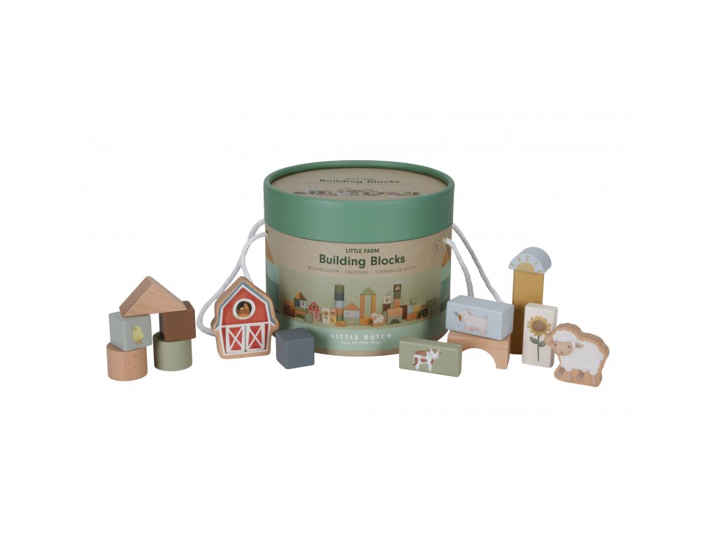Drevené kocky sú doslova nevyhnutnosťou do každej detskej izby. Tuba obsahuje 50 drevených kociek rôznych farieb a tvarov s krásnou potlačou motívov zo života na farme. Popustite uzdu fantázii a vytvárajte spolu s vašim dieťaťom kreatívne stavby. Keď hra skončí, jednoducho kocky uložíte späť do tuby!
