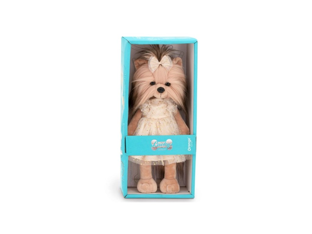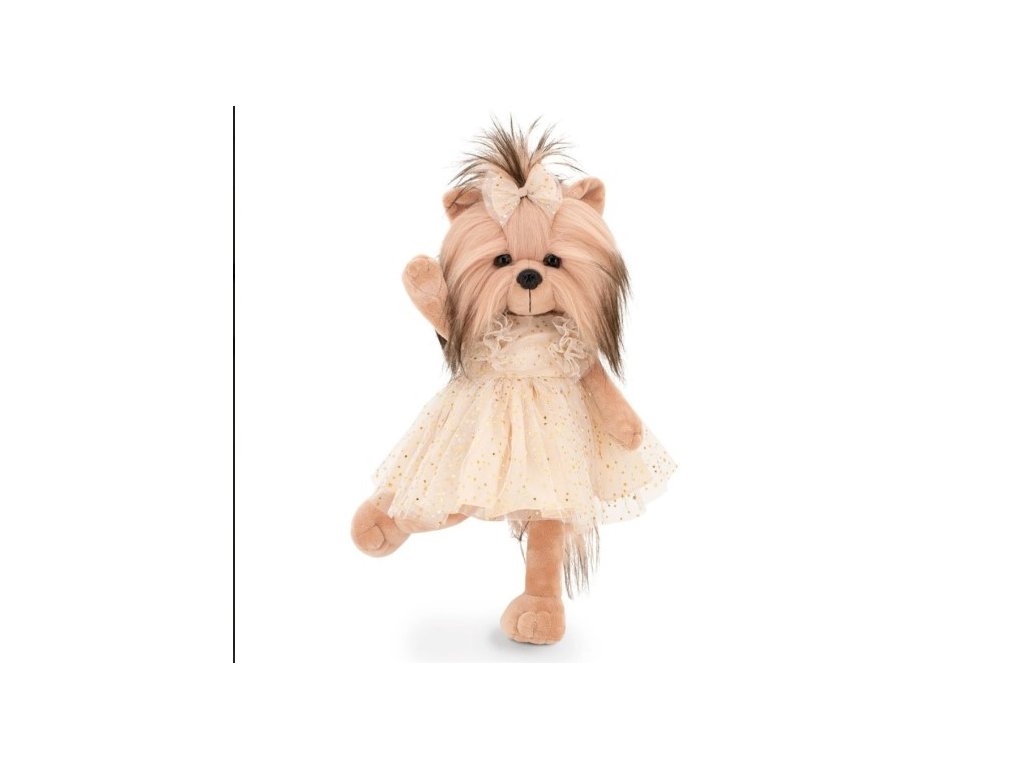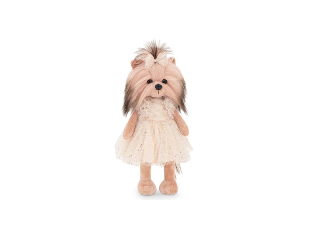 Plyšový psík yorkšírka Lucky Doggy – Yoyo Starlight: elegantná plyšová kamarátka v zlatých tylových šatách