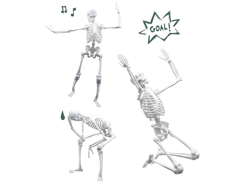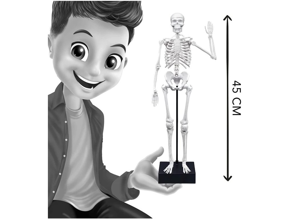 Kosti majú realistickú štruktúru a farbu. Kostra je plne kĺbová a dieťa si ju môže nastaviť do akejkoľvek polohy.