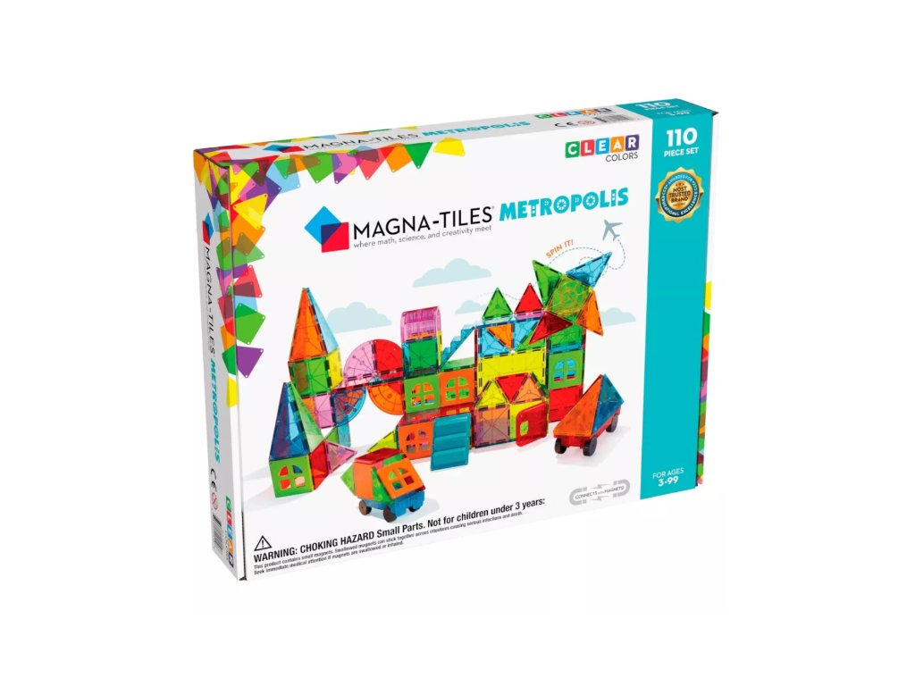 Metropolis je zatiaľ najväčšou magnetickou stavebnicou Magna-Tiles, s ktorou si deti môžu postaviť čokoľvek – od mestských panorám cez stredoveké pevnosti až po vesmírne stavby. Sada obsahuje 110 magnetických dielikov rôznych geometrických a jedinečných tvarov, ako sú okná, dvere či schodiská. Stavebnica v neónových farbách prináša deťom hodiny nápaditej a sústredenej zábavy. Je kompatibilná so všetkými súpravami Magna-Tile®, čo umožňuje nekonečné možnosti kombinácií.