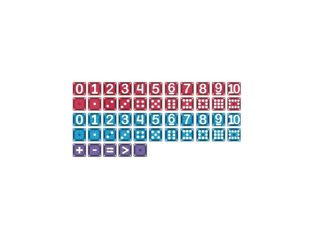 Magnetická stavebnica microMAGS Learn Numbers mení učenie matematiky na zábavnú a interaktívnu hru. Vďaka menším dielikom microMAGS (s rozmerom 3,8 × 3,8 cm) je ideálna na počítanie, porovnávanie a prvé matematické operácie – hravo a bez stresu. Farebne rozlíšené číselné dieliky v modrej a červenej farbe, dieliky s bodkami a fialové dieliky s matematickými symbolmi pomáhajú deťom postupne prechádzať od rozpoznávania čísel až k jednoduchým príkladom. Stavebnica „rastie“ spolu s dieťaťom a prispôsobuje sa jeho schopnostiam.