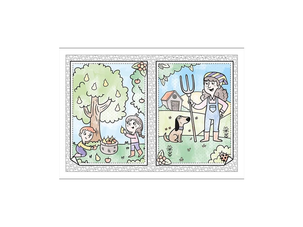 Maľovanky obsahujú 8 čarovných obrázkov, na ktorých vyfarbenie stačí deťom iba štetec a pár kvapiek vody. Stránky obsahujú farebné bodky, ktoré po rozotretí obrázok vyfarbia.