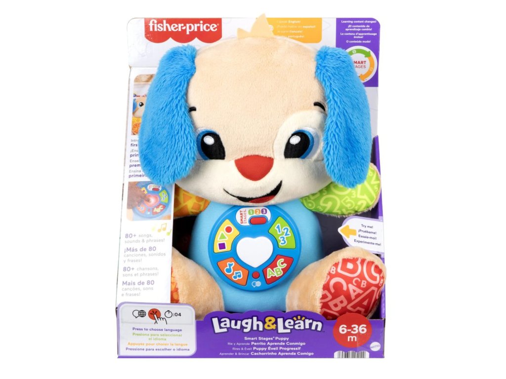 Roztomilý hovoriaci psík Smart Stages® z obľúbenej série Fisher-Price® Smej sa a uč sa!® je mäkká, hudobná plyšová hračka, ktorá rozvíja detské zručnosti hravou formou.