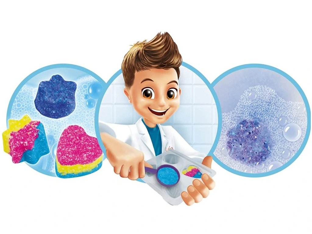 Sada pre výrobu "bômb", ktoré po vhodení do vody začnú silno peniť až kým sa nerozpustia. Zvolíte farbu a tvar a pomocou jednoduchého návodu si vyrobíte niekoľko bômb pre zábavu vo vani. Sada umožňuje urobiť až 6 pokusov, ktoré deti zábavnou formou zoznámia s princípom penivých guličiek.