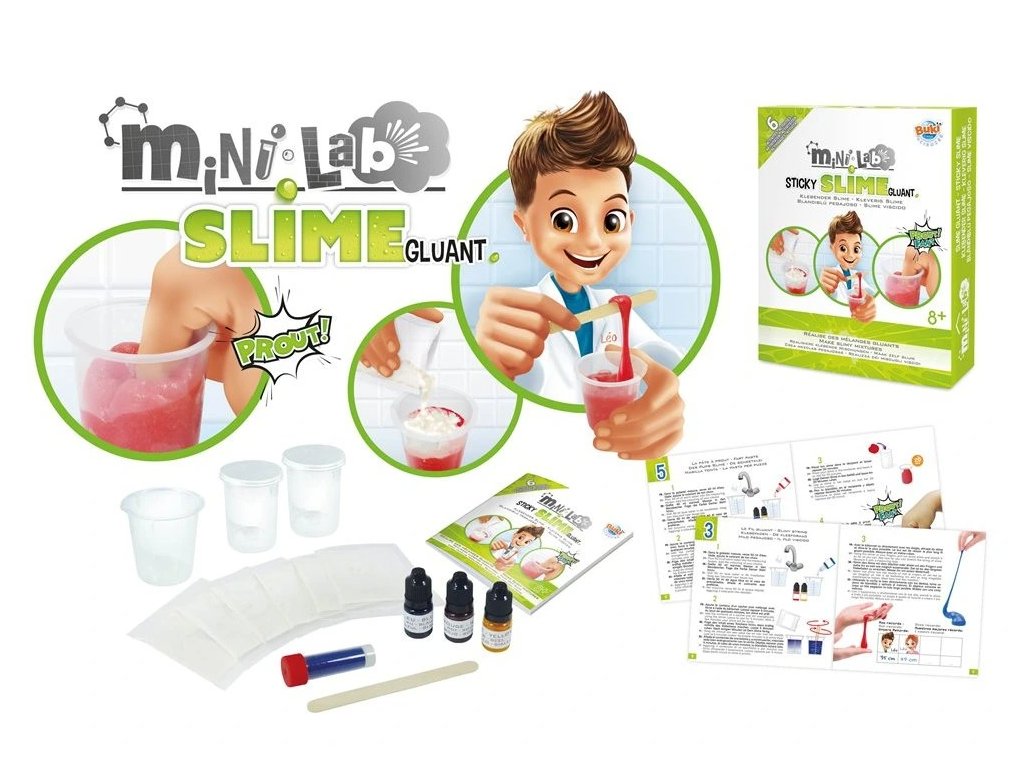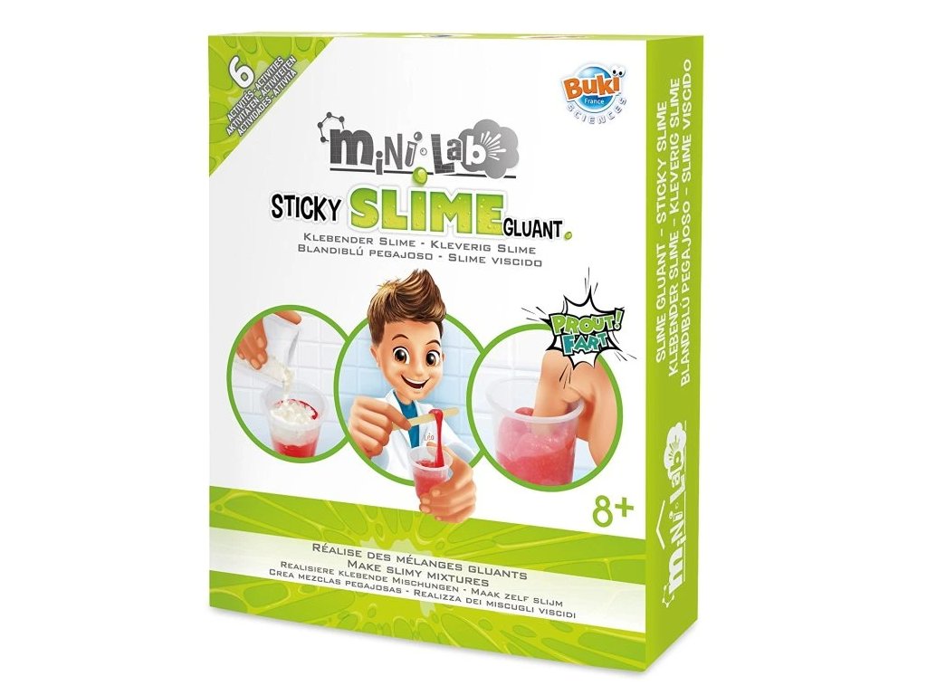 Zábavná sada pre výrobu obľúbeného prdiaceho slizu. Z niekoľkých ingrediencií a jednoduchým postupom si vyrobíš rôzne druhy a farby slizu. Sada obsahuje celkom 6 pokusov a vyrobíš si napríklad lepkavý sliz, prdiaci sliz, trblietavý sliz a ďalšie nechutnosti.