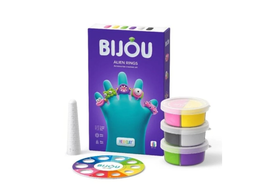Sada obsahuje 3 nádobky modelovacie hmoty v 6 farbách na výrobu 5 originálnych prstienkov. Súčasťu sady je aj prstový meter a pomôcky pre jednoduchšie modelovanie. Navyše, prístupový kód do aplikácie umožňuje detičkám inšpirovať sa novými nápadmi a vytvoriť si rôzne postavičky presne podľa návodu. Ak deti nie sú so svojím výtvorom spokojné, Hey Clay môžu jednoducho uložiť späť do téglika a pokračovať v modelovaní neskôr. Deti si pri hre trénujú svoje zručnosti, jemnú motoriku a rozvíjajú fantáziu.