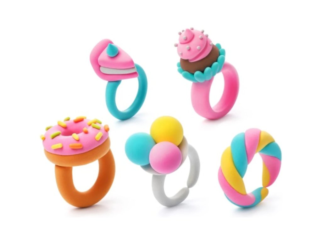 Modelovacia hmota Hey Clay je ideálna pre všetky deti, ktoré milujú kreatívne tvorenie. Chcete prsteň sladký ako váš obľúbený dezert? Vďaka jemnej a voňavej modelovacej hmote si deti vytvoria originálne prstienky v tvare ich obľúbených sladkostí alebo iné rôzne figúrky, podľa vlastnej fantázie. Po vymodelovaní stačí nechať výtvory zatvrdnúť na vzduchu približne 24 hodín, čím sa premenia na pevné figúrky a sú pripravené na ďalšie dobrodružstvá a hry.
