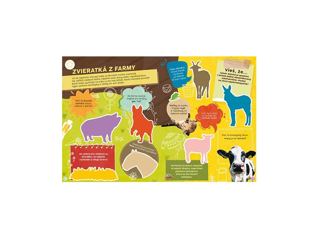 Náučná samolepková knižka obsahuje 16 tematických strán a 4 strany plné farebných samolepiek.
