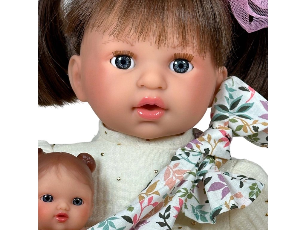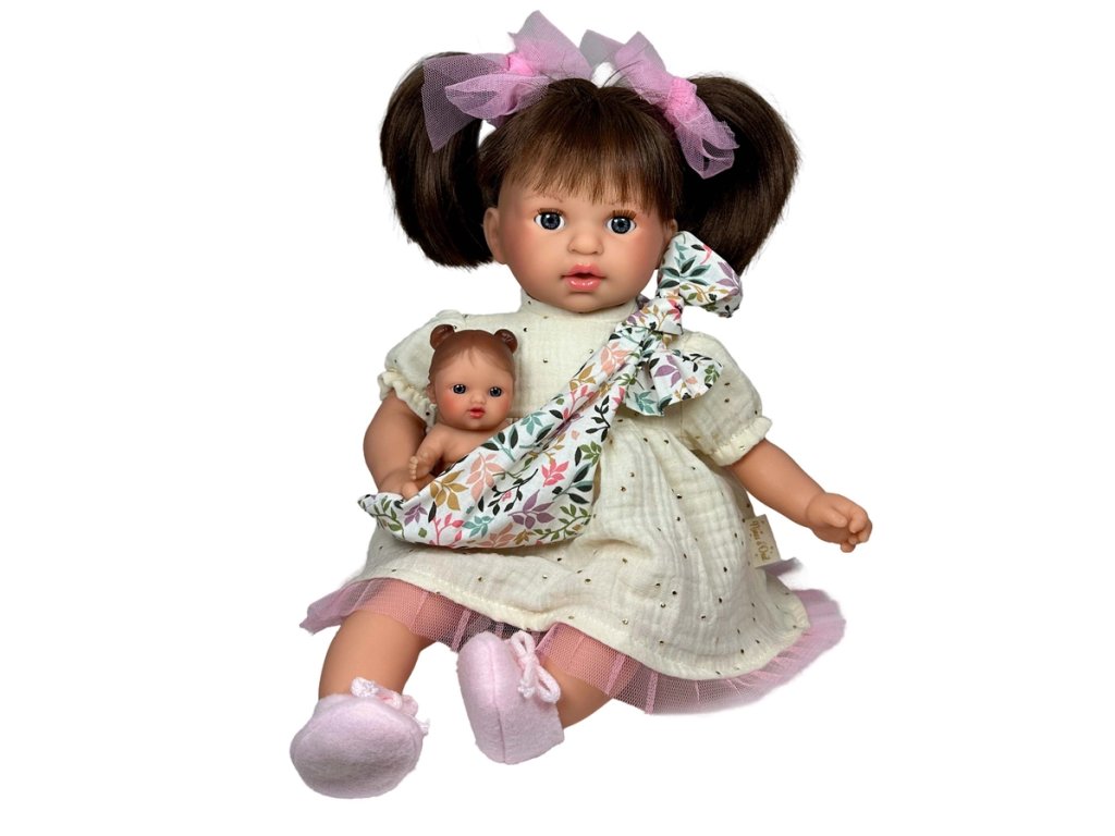 Bábika Alex s hnedými vlasmi a modrými očami. Má látkové telo a nosí krémové šaty, ružové mašle do vlasov, hnedé topánky a kvetinový náhrdelník. Dodáva sa s mini bábikou a v plátennom vrecúšku.