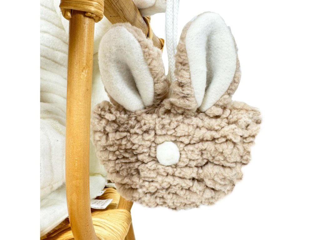 Bábika Celia meria 45 cm a je balená v látkovom vrecku s potlačou, ktoré sa uzatvára šnúrkou.