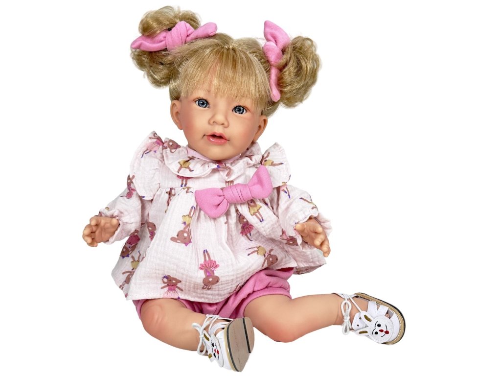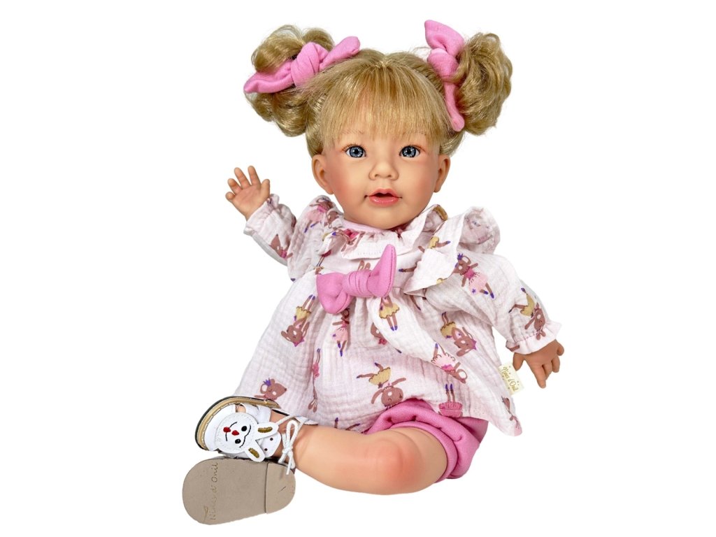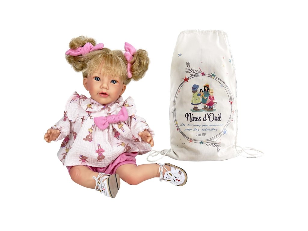 Nines d'Onil bábika Chloe 48cm vyrobená z vinylu s jemnou vanilkovou vôňou a dodávaná v plátennom vrecúšku.