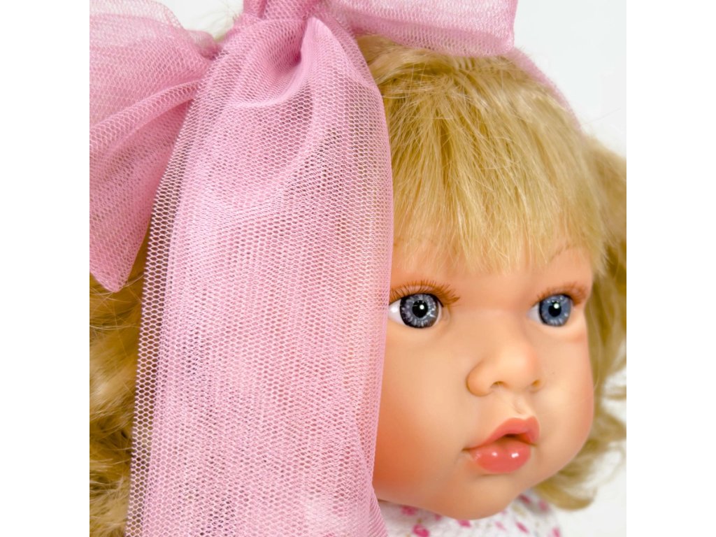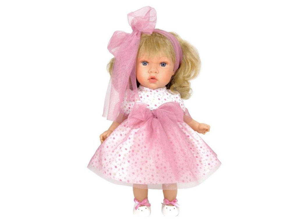 Bábika biele dievčatko s blond vlasmi a modrými očami. Má látkové telo a nosí bielo-ružové šaty, ružovú mašľu vo vlasoch a biele topánky. Dodáva sa v plátennom vrecúšku.