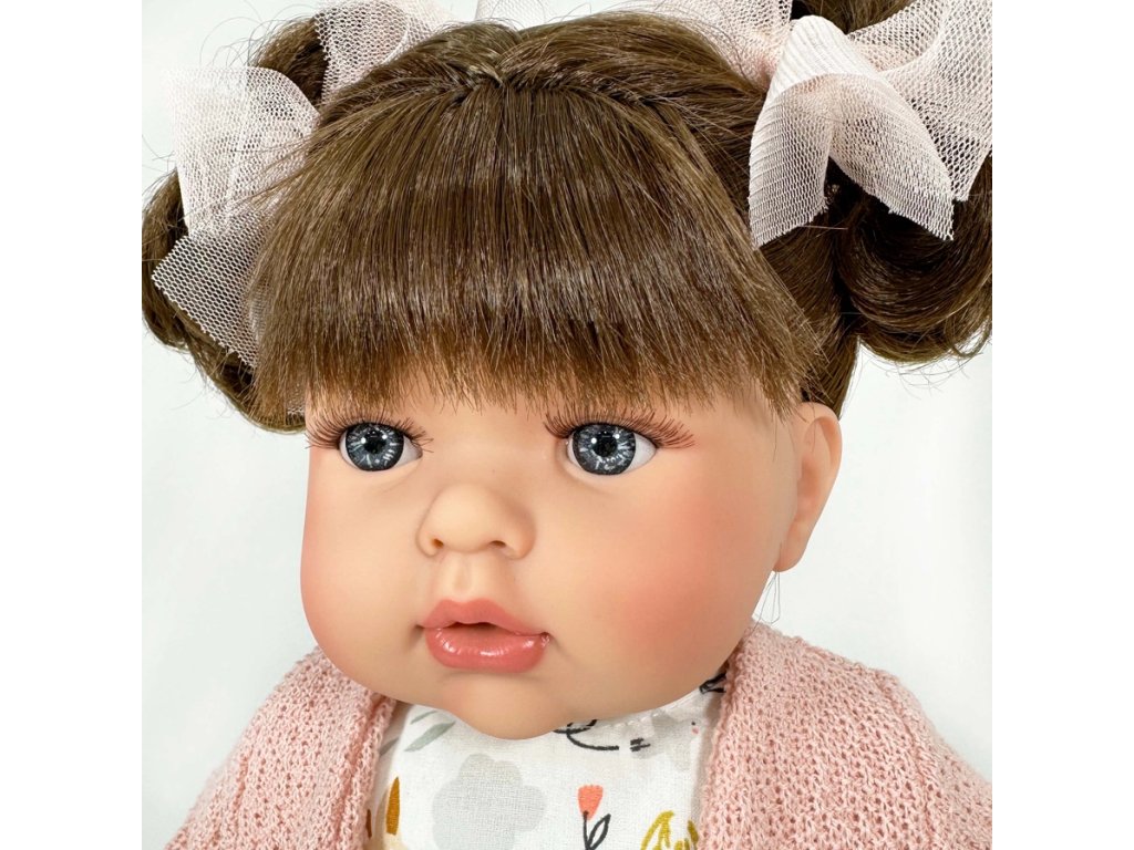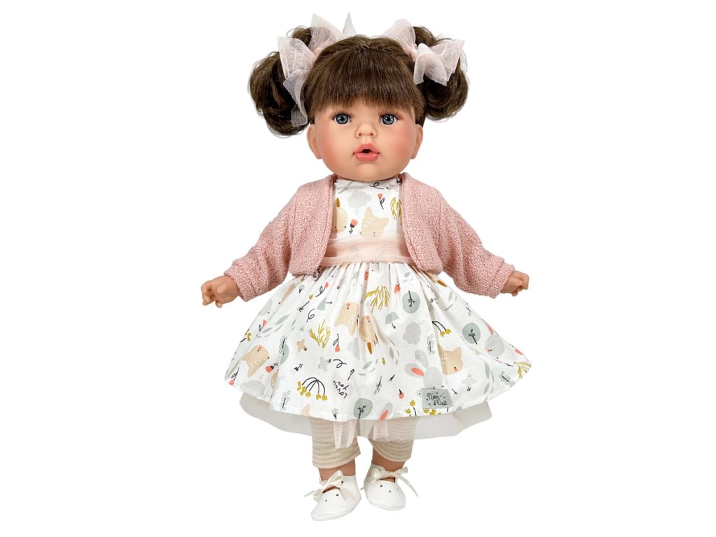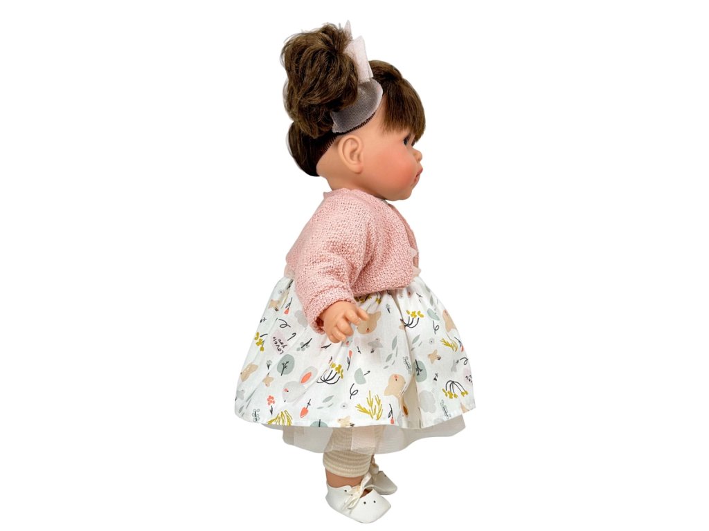 Bábika je biele dievčatko s hnedými vlasmi a modrými očami. Má látkové body a má na sebe biele šaty s potlačou, ružový kardigan, pruhované legíny a biele topánky. Dodáva sa v plátennom vrecúšku.