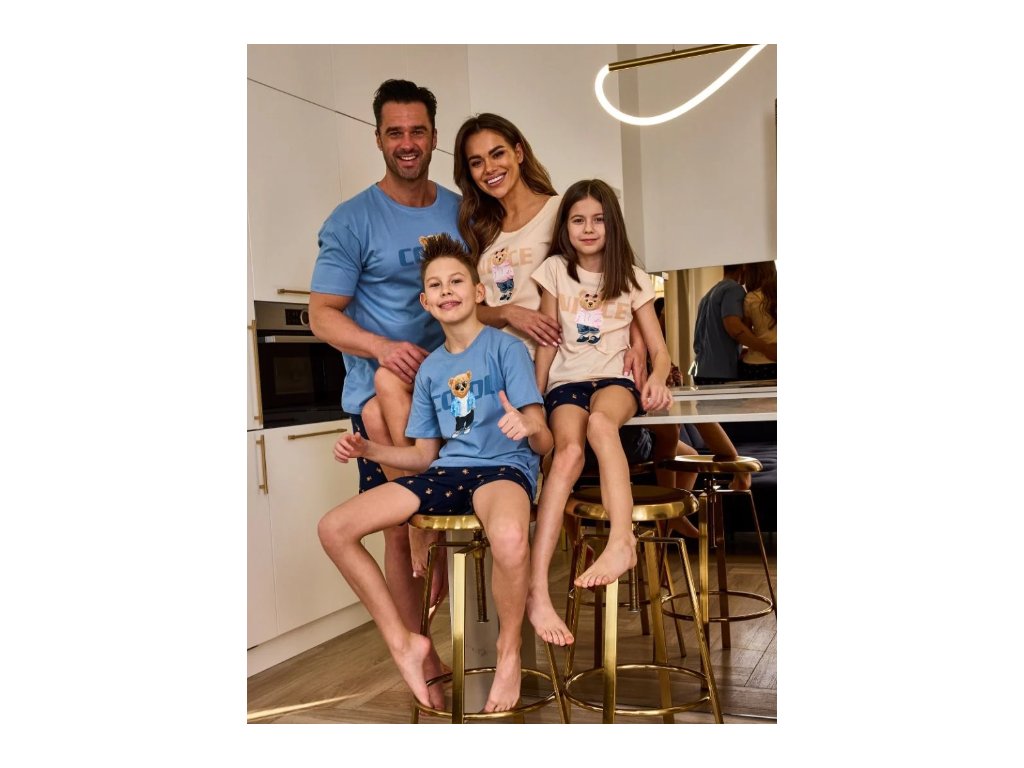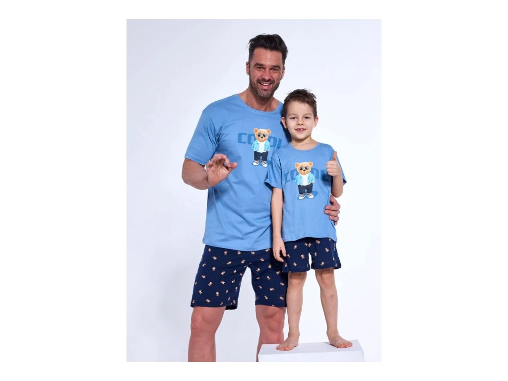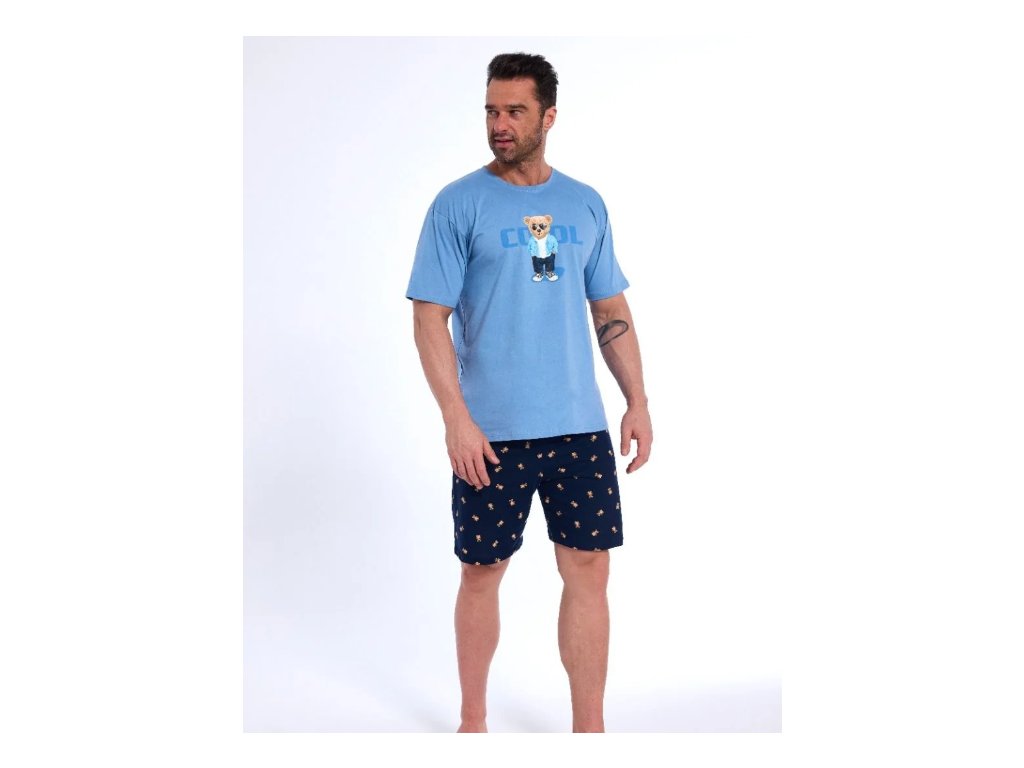 Toto krátke pánske pyžamo je perfektnou voľbou na Valentína aj na každodenné nosenie. Modrý top s potlačou medvedíka s okuliarmi a nápisom „Cool“ mu dodáva moderný a zábavný charakter. Súpravu dopĺňajú námornícke šortky zdobené roztomilými hnedými medvedíkmi, ktoré spájajú pohodlie s jedinečným štýlom. Pyžamo je vyrobené z najkvalitnejšej bavlny a poskytuje pohodlie a radosť z nosenia po celý rok. Je to perfektná ponuka pre mužov, ktorí si cenia pohodlie a originalitu. Pánske pyžamo Cornette krátky rukáv je vyrobené z vyskokvalitnej bavlny.