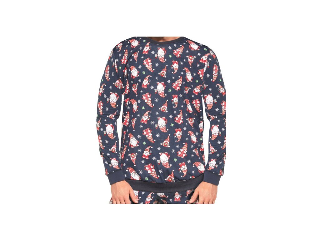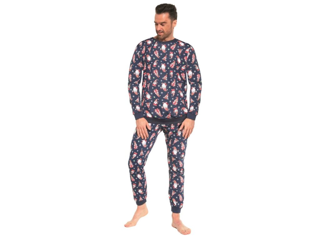 Veľmi príjemné pyžamo pre mužov s tričkom s dlhým rukávom a dlhými nohavicami. Krásne pánske pyžamo Vám prináša obľúbené Cornette. Bavlnené tmavomodré tričko s klasickým okrúhlym výstrihom je celé posiate roztomilými obrázkami s vianočnou tématikou. Dlhé rukávy aj spodný lem sú ukončené manžetou. Dlhé nohavice sú tiež celé v tlači obrázkov. V páse sú do širšej gumy. Nohavice sú zakončené do manžety. Pohodlné pyžamo na sladké sny.