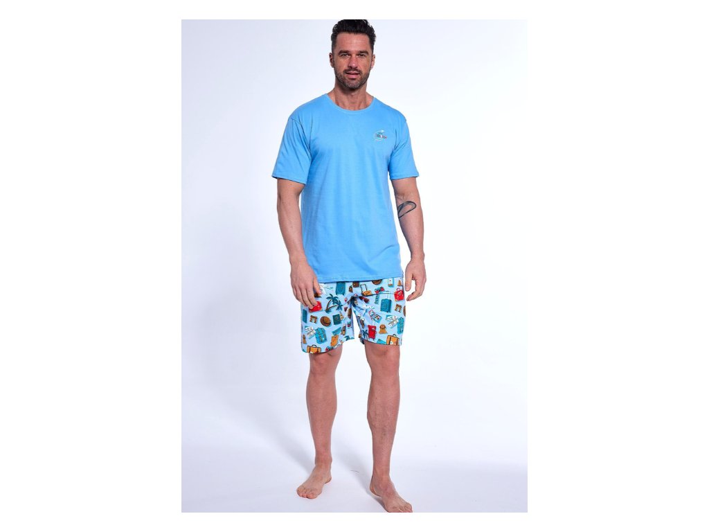 Pánske pyžamo z vysoko kvalitnej bavlny. Tričko s krátkym rukávom, polkruhový výstrih.Vzorované šortky, ktoré ladia.