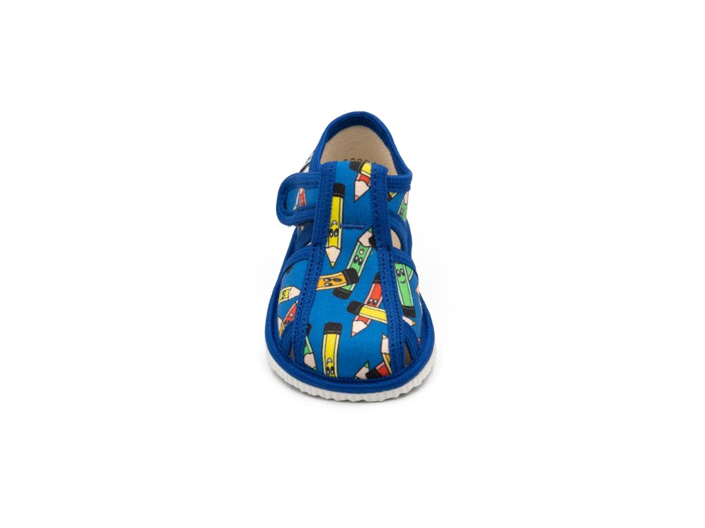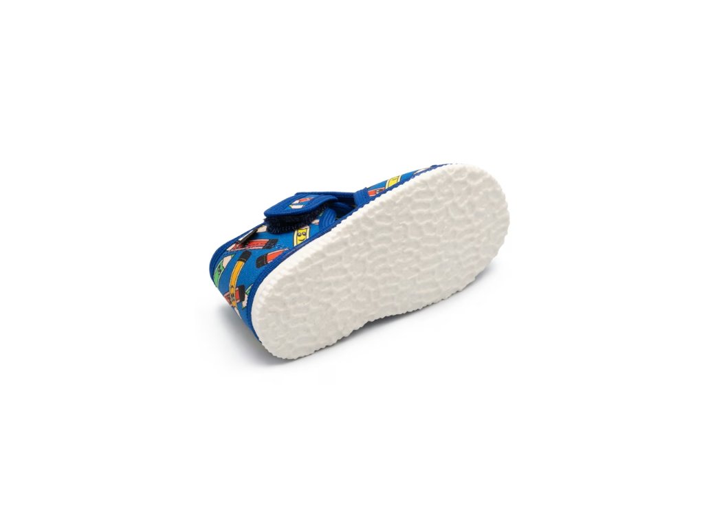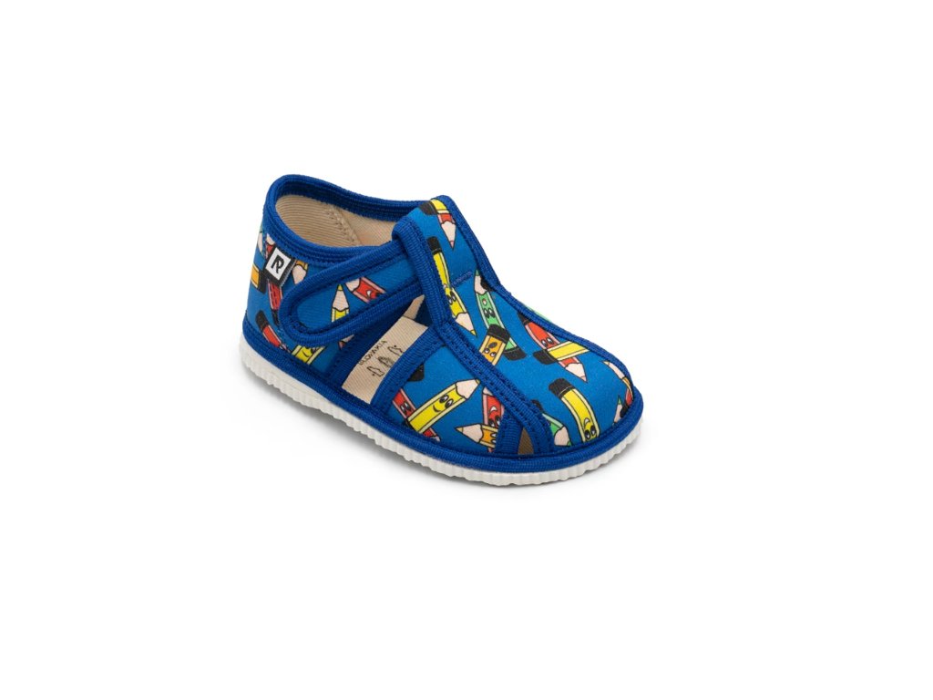 Detské  papuče, sandálkového strihu s uzavretou špicou so zapínaním na "suchý zips ". Tvar špičky s dôrazom na typicky detský dominantný palček zabezpečuje dostatočný priestor pre prsty. Papučky sú ľahké, pružné, vyrobené z textilu ( zo 100% bavlny ), ktorý zabezpečuje priedušnosť a dokonalú prispôsobilosť tvaru nohy. Stielka papučky je v časti klenku vyplnená penovým materiálom, čo zabezpečuje dieťaťu pohodlnú chôdzu a podporuje zdravý vývoj nohy. Obuv je určená do interiéru ako prezúvková obuv. Je zdravotne a hygienicky nezávadná. Obuv sa ako nová môže na hladkých povrchoch šmýkať ( keramická dlažba, laminátová podlaha...) Na takéto povrchy je vhodnejšia obuv z našej ponuky pod označením inovatívne a flexi papuče. V rámci licenčného oprávnenia na používanie ochrannej známky Žirafa a Česká kvalita bola posudzovaná komisiou odborníkov a detského ortopéda. Papuče prezuvky RAK sú najlepšia voľba pre vaše dieťa.