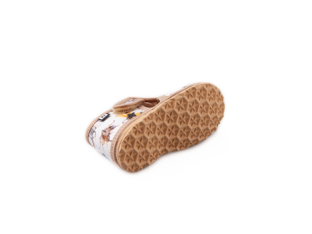 Papučky s uzavretou špicou zo 100 % bavlny s inovatívnymi prvkami, so stielkou z „pamäťovej“ peny a prírodnej podšívkovej ECO kože (chromfree). Papuče prezuvky RAK sú najlepšia voľba pre vaše dieťa.