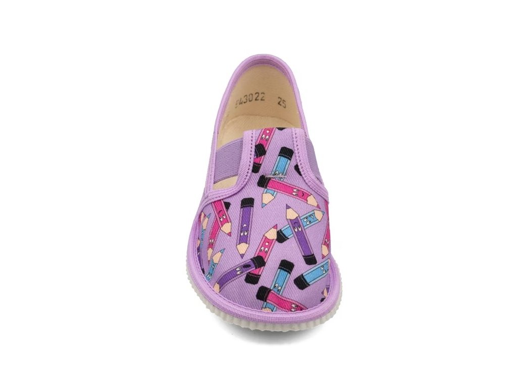 Detská domáca obuv - papuče, s gumotextilným pásikom cez priehlavok určená pre deti cca od 2 do 10 rokov. Papuča je ľahká, pružná, vyrobená z textilu (zo 100%-nej bavlny), ktorý zabezpečuje priedušnosť a dokonale sa prispôsobí tvaru nohy. Stielka papučky je vyrobená v kombinácii s anatomicky tvarovaným klenkom, čo zabezpečuje dieťaťu pohodlnú a bezpečnú chôdzu a podporuje zdravý vývoj nohy. Obuv je určená ako prezúvková obuv do domácností, škôlky, školy a podobne. Papuče nie sú vhodné na voľnočasové športové aktivity v telocvični, na školskom ihrisku a podobne. Obuv má certifikát o zdravotnej a hygienickej nezávadnosti. Okrem toho bola posudzovaná komisiou odborníkov a špecialistov z pohľadu ortopédie, pediatrie, modelingu obuvi, technológie výroby a použitých materiálov. Papuče prezuvky RAK sú najlepšia voľba pre vaše dieťa.