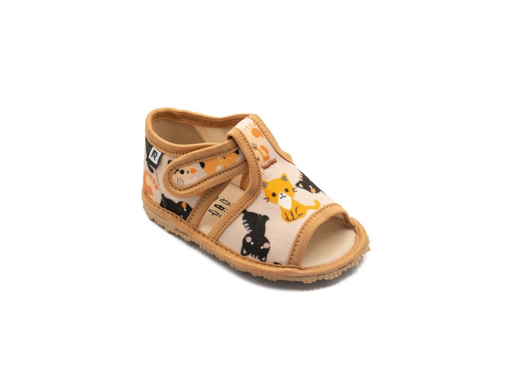 Papučky s otvorenou špicou zo 100 % bavlny s inovatívnymi prvkami, so stielkou z „pamäťovej“ peny a prírodnej podšívkovej ECO kože (chromfree). Papuče prezuvky RAK sú najlepšia voľba pre vaše dieťa.