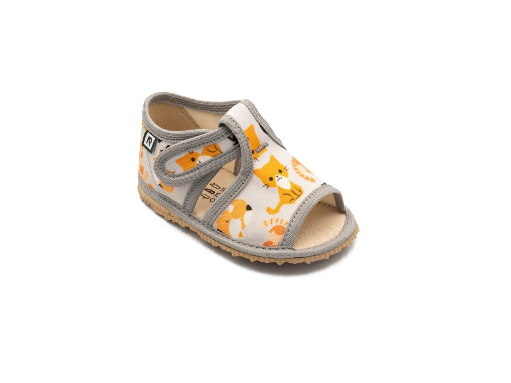 Papučky s otvorenou špicou zo 100 % bavlny s inovatívnymi prvkami, so stielkou z „pamäťovej“ peny a prírodnej podšívkovej ECO kože (chromfree). Papuče prezuvky RAK sú najlepšia voľba pre vaše dieťa.