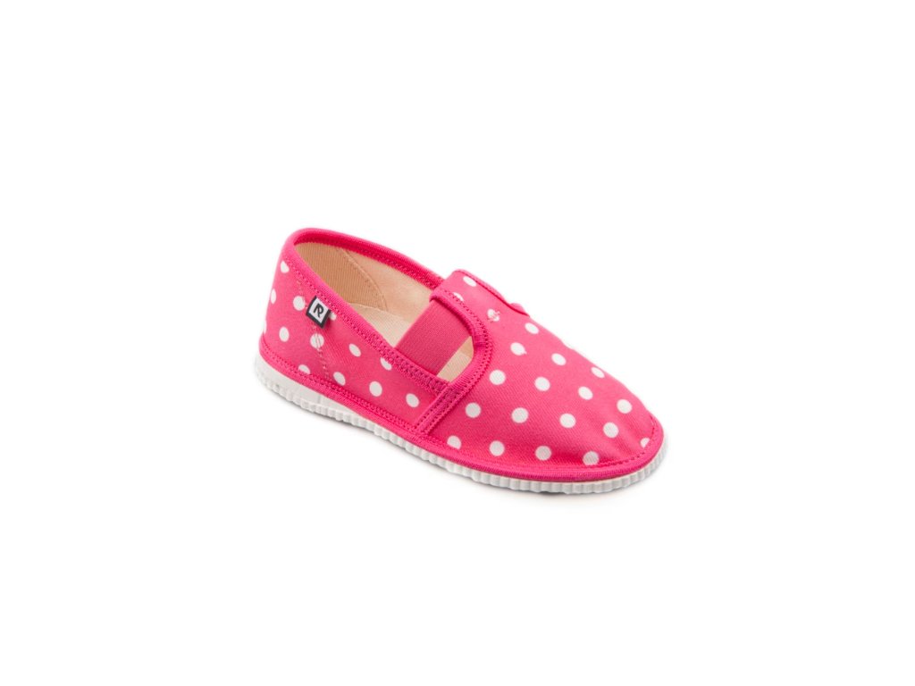 Detská domáca obuv - papuče, s gumotextilným pásikom cez priehlavok určená pre deti cca od 2 do 10 rokov. Papuča je ľahká, pružná, vyrobená z textilu (zo 100%-nej bavlny), ktorý zabezpečuje priedušnosť a dokonale sa prispôsobí tvaru nohy. Stielka papučky je vyrobená v kombinácii s anatomicky tvarovaným klenkom, čo zabezpečuje dieťaťu pohodlnú a bezpečnú chôdzu a podporuje zdravý vývoj nohy. Obuv je určená ako prezúvková obuv do domácností, škôlky, školy a podobne. Papuče nie sú vhodné na voľnočasové športové aktivity v telocvični, na školskom ihrisku a podobne. Obuv má certifikát o zdravotnej a hygienickej nezávadnosti. Okrem toho bola posudzovaná komisiou odborníkov a špecialistov z pohľadu ortopédie, pediatrie, modelingu obuvi, technológie výroby a použitých materiálov.Papuče prezuvky RAK sú najlepšia voľba pre vaše dieťa.