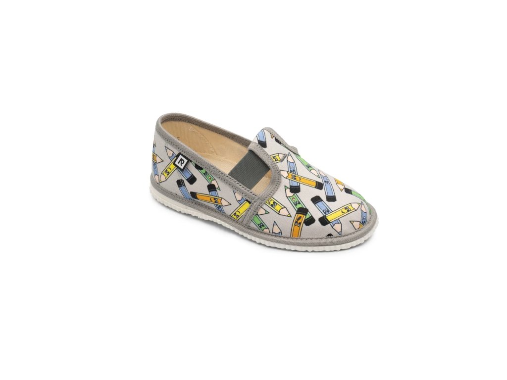 Detská domáca obuv - papuče, s gumotextilným pásikom cez priehlavok určená pre deti cca od 2 do 10 rokov. Papuča je ľahká, pružná, vyrobená z textilu (zo 100%-nej bavlny), ktorý zabezpečuje priedušnosť a dokonale sa prispôsobí tvaru nohy. Stielka papučky je vyrobená v kombinácii s anatomicky tvarovaným klenkom, čo zabezpečuje dieťaťu pohodlnú a bezpečnú chôdzu a podporuje zdravý vývoj nohy. Obuv je určená ako prezúvková obuv do domácností, škôlky, školy a podobne. Papuče nie sú vhodné na voľnočasové športové aktivity v telocvični, na školskom ihrisku a podobne. Obuv má certifikát o zdravotnej a hygienickej nezávadnosti. Okrem toho bola posudzovaná komisiou odborníkov a špecialistov z pohľadu ortopédie, pediatrie, modelingu obuvi, technológie výroby a použitých materiálov. Papuče prezuvky RAK sú najlepšia voľba pre vaše dieťa.