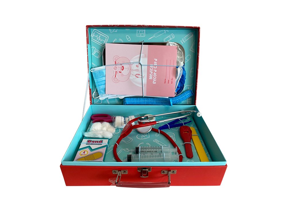 Kufrík 27 kusov . Veľké príslušenstvo, ktoré potrebuje každý lekár. Funkčný stetoskop, náplasti, injekcie.