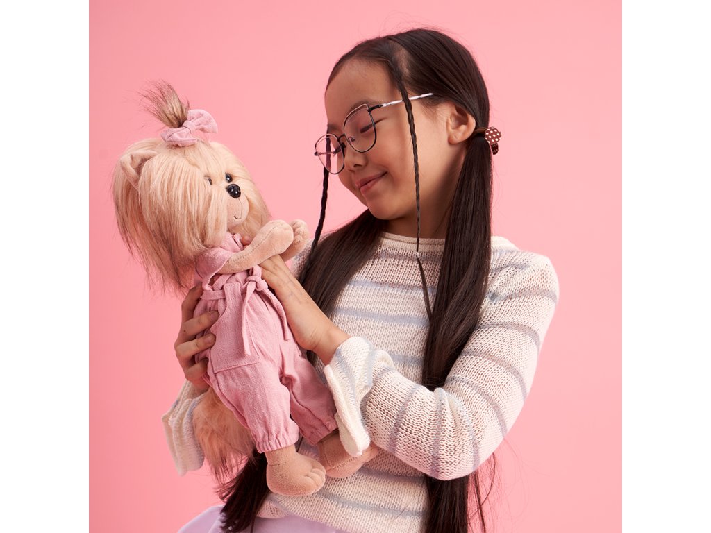 Plyšový psík yorkšírka Lucky Doggy – Yoyo Comfortable Walk: plyšová kamarátka v ružovom overale