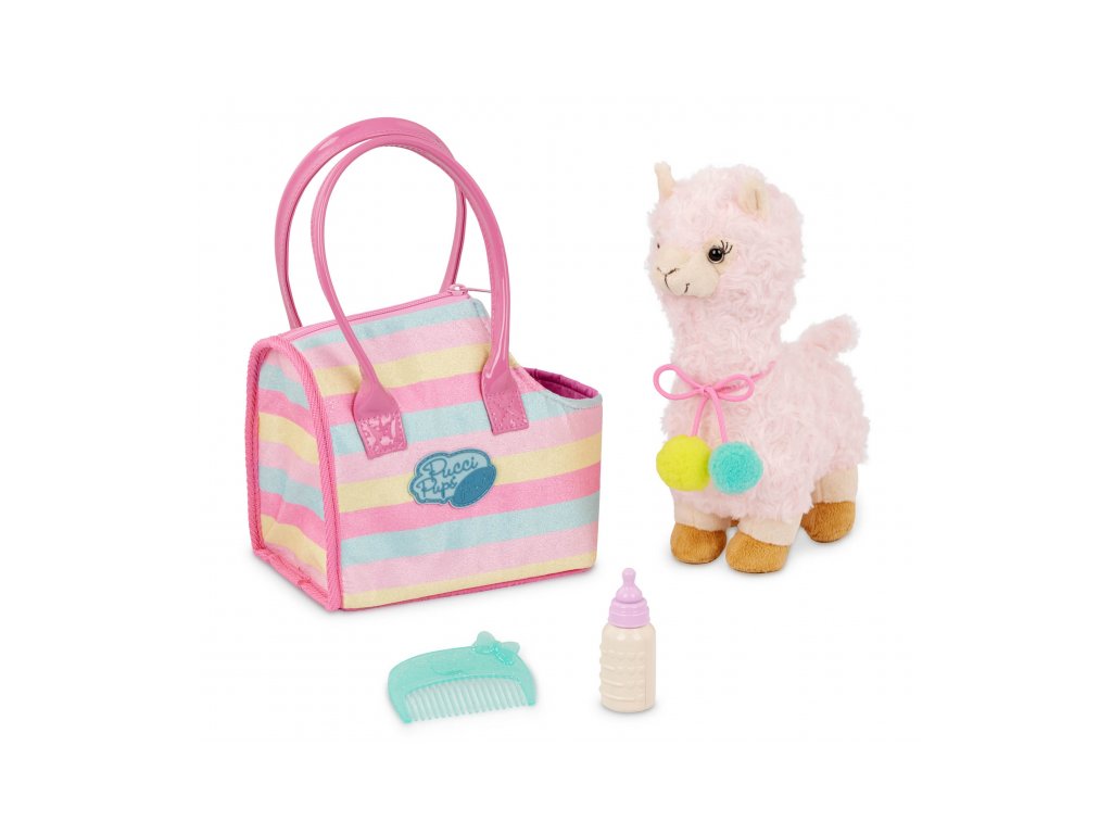 Obsah balenia: taška, plyšová lama, hrebeň, fľaštička