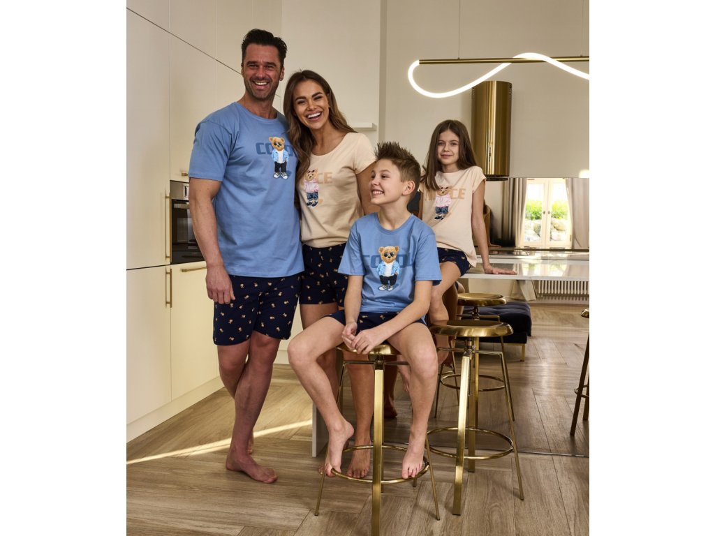 ● ku kompletu tmavomodré krátke šortky s medvedíkmi
