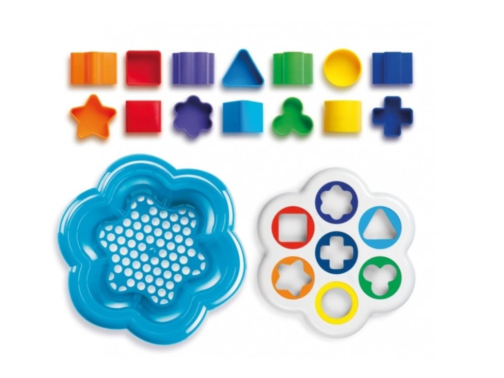 Stavebnica rozvíjajúca jemnú motoriku, tvorivosť a schopnosť rozoznávať farby a tvary. Skladá sa zo 14 rôznofarebných dielikov siedmich rôznych tvarov, ktoré sa učia deti rozpoznať a vložiť do správneho otvoru vo veku. Po ukončení hry je možné celú súpravu uložiť do úhľadnej schránky v tvare kvetiny. Všetky diely stavebnice sú umývateľné.