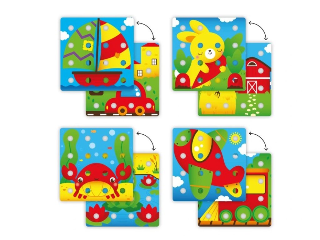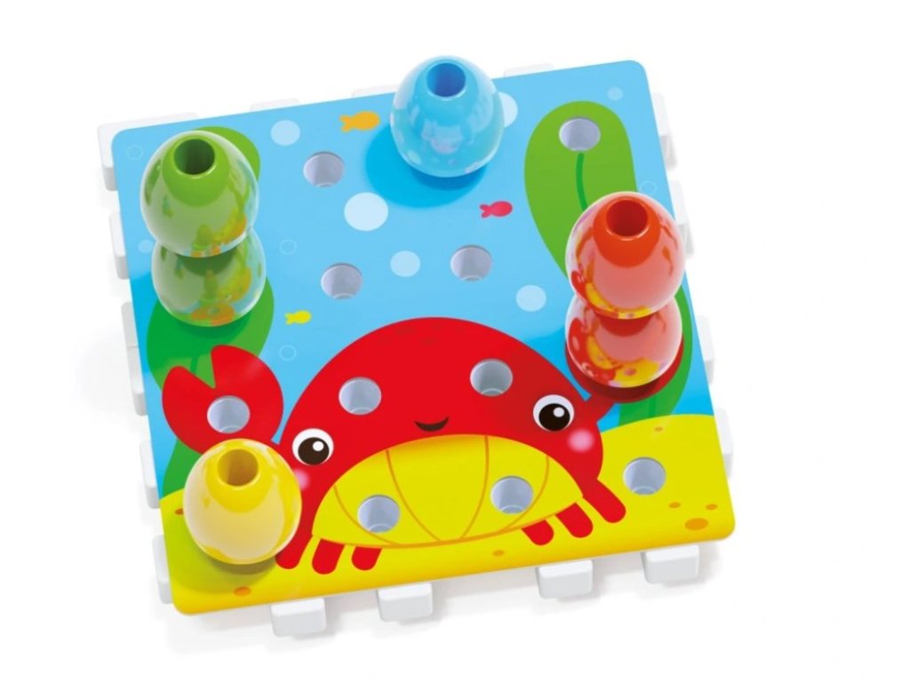 Zábavná didaktická mozaika určená deťom od 2 rokov. Veľké farebné, stohovateľné hríbiky povzbudzujú deti k tvorbe prvých obrázkov pomocou mozaiky alebo ku stavbe veží. Skvelá hra, ktorá rozvíja kreativitu a manuálnu zručnosť.