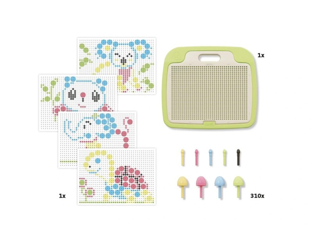 Klasická mozaiková hríbiková hra, ktorá baví deti po celom svete. Hracia doska a úložné puzdro pre ľahké upratovanie po hraní. Súprava rozvíja detskú motoriku, tvorivosť a fantáziu. Vyrobené z recyklovaných materiálov v sérii PLAYECO+. Vhodné pre deti od 3 rokov.