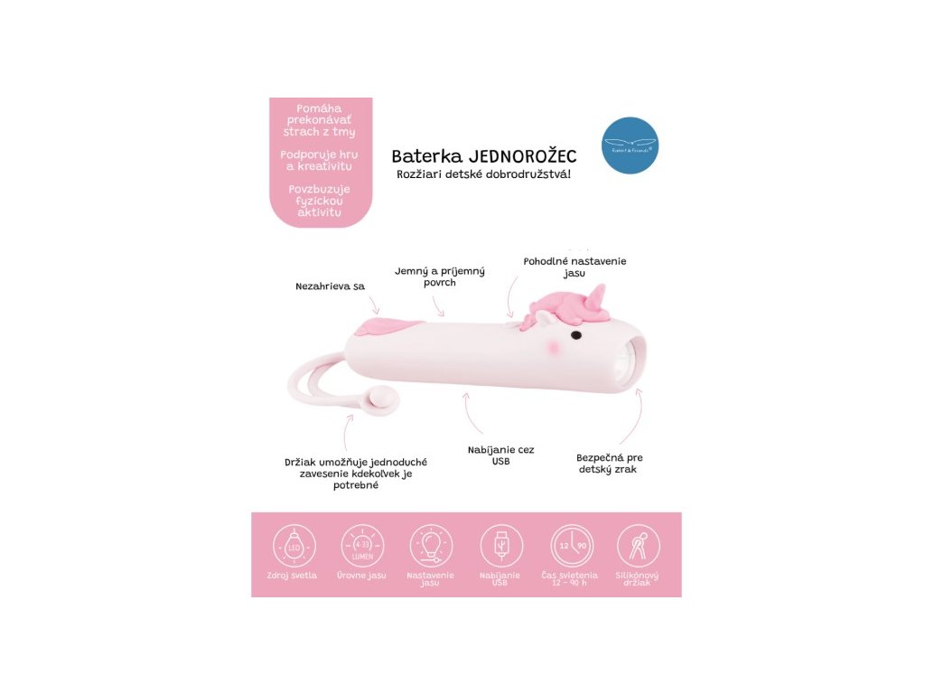 Rabbit and Friends Detská baterka Jednorožec