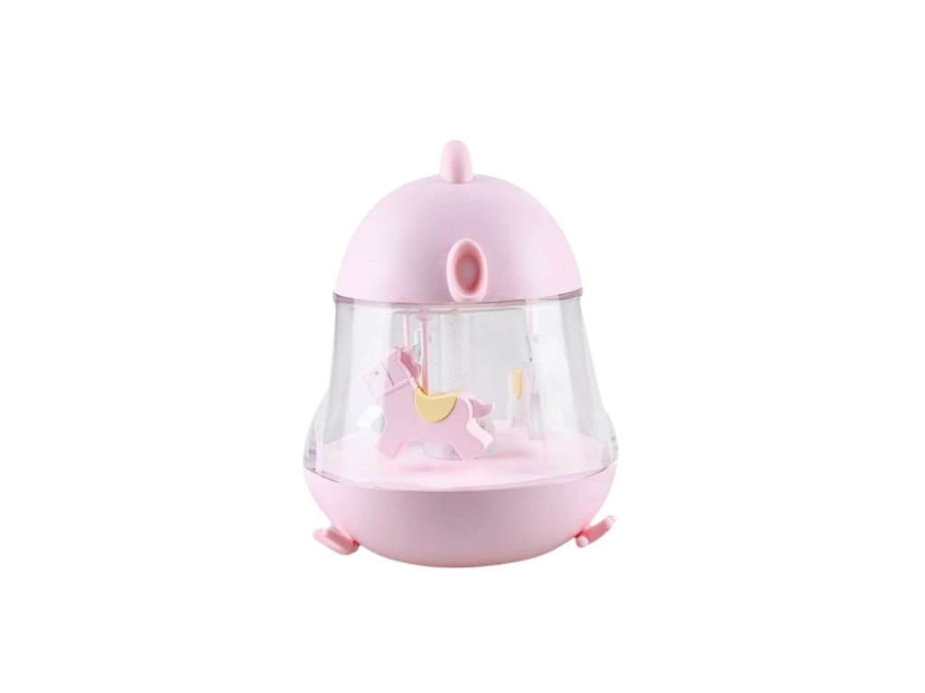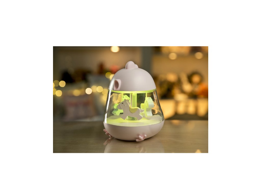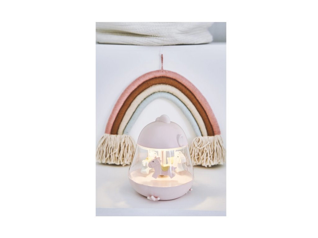Detské svetielko s hudbou a kolotočom dodá každej detskej izbe čarovný nádych. Ponúka jemné a príjemné osvetlenie, ktoré vytvára pokojnú atmosféru, kolotoč s koníkmi, ktoré sa pomaly točia v kruhu, zaujme pozornosť dieťatka a pomáha mu relaxovať. V spojení s príjemnou hudbou je to dokonalý nástroj na uspávanie malého drobca. Lampička poslúži aj ako svietiaca hračka, ktorá svojím zvukom, svetlom a pohybom stimuluje zmysly dieťaťa.