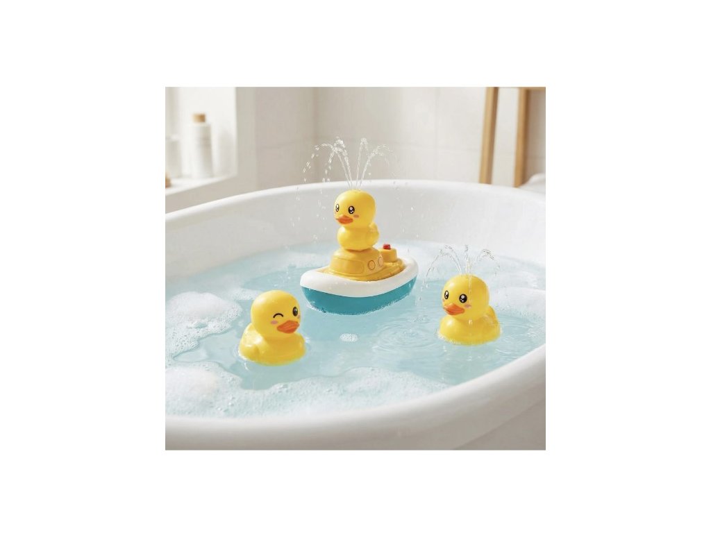 Plávajúca loďka s kačičkami prinesie deťom do kúpeľne poriadnu dávku vodnej zábavy. Súčasťou balenia je jedna loďka a tri kačičky, ktoré sa pri zapnutí alebo po kontakte s vodou môžu otáčať a striekať vodu, čím vytvárajú efekty fontánky alebo vodného kruhu okolo seba. Deti môžu loďku naháňať po hladine, pozorovať prúdy vody a vymýšľať si vlastné vodné príbehy.