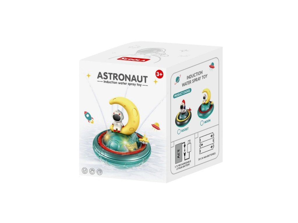 Hračka podporuje zmyslové vnímanie, predstavivosť a motivuje deti, aby si kúpanie spájali s príjemným zážitkom. Astronaut Mesiac funguje na batérie, ktoré nie sú súčasťou balenia. Hračka bezpečná a vhodná pre deti od 3 rokov. Ide o výborný darček pre malých fanúšikov vesmíru, ktorí milujú vodné hry a radi sledujú, ako prúdy vody striekajú do všetkých strán.