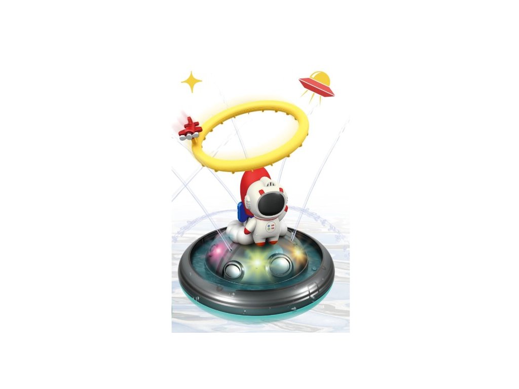 Striekacia hračka do vody Astronaut Raketa premení kúpanie na vesmírnu misiu plnú vody, svetiel a fantázie. Po položení na hladinu sa cez indukčný spínač automaticky aktivuje čerpadlo a voda začne striekať, pričom loďka môže jemne rotovať. Farebné LED svetlá vo vnútri základne rozžiaria vodu a vytvárajú efekt malého vesmírneho kolotoča, ktorý deti fascinuje pri kúpaní aj v bazéne.