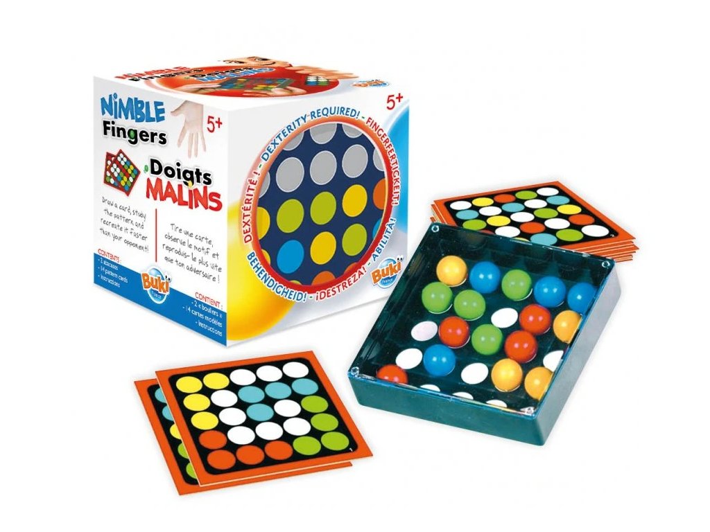 - Obaja hráči musia zreprodukovať vzorovú kartu tak, že presunú koráliky pomocou prstov. Ten, kto skončí ako prvý (uistite sa, že ste dôkladne skontrolovali, či je to správne) vyhráva kolo a kartu si ponechá.