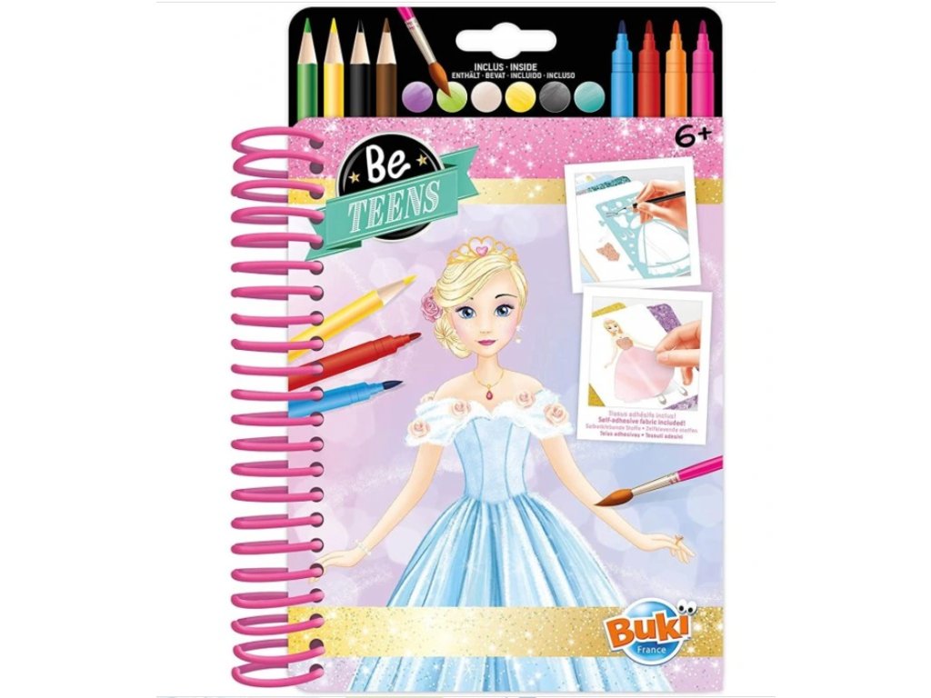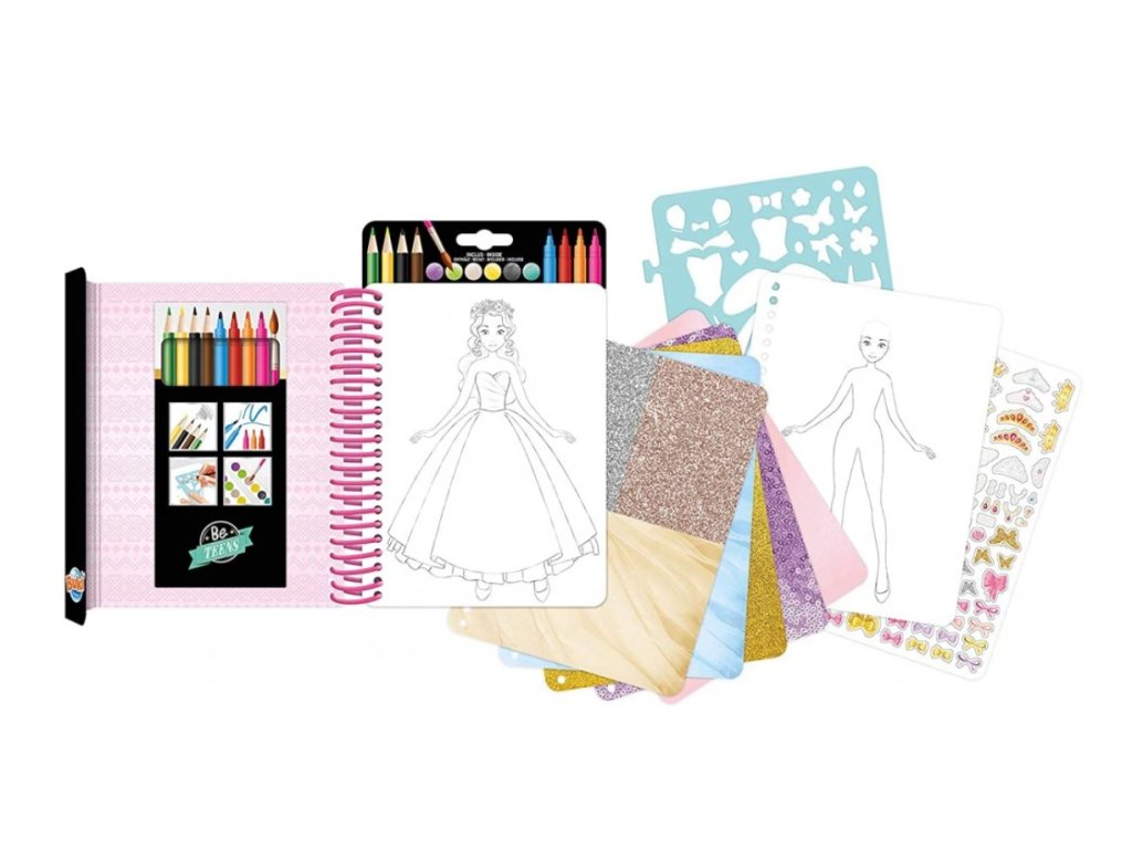 Vytvorte a nakreslite si vlastné jedinečné oblečenie! Použite samolepiace látky a oživte svoje návrhy! Nakreslite oblečenie pomocou šablón a potom ho doplňte samolepkami. Súčasťou balenia sú 4 farebné ceruzky, 4 obojstranné fixky a paleta 24 farieb.