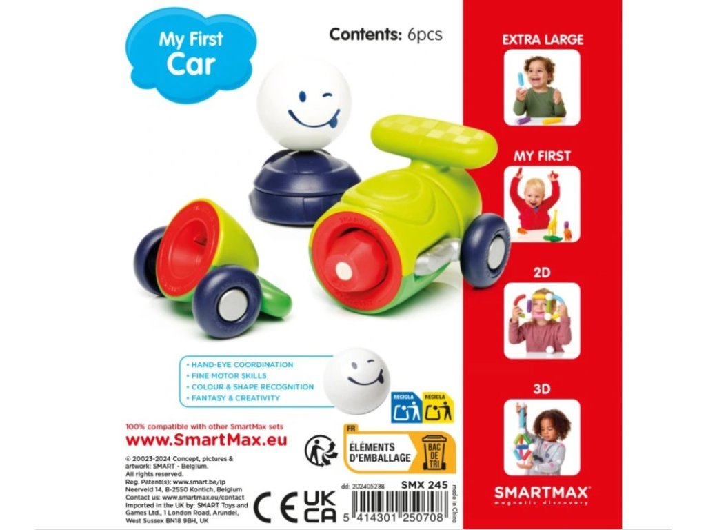 Zostavte si roztomilé autíčko SmartMax, naštartujte motor a vydajte sa v ústrety novým dobrodružstvám! Úžasná magnetická stavebnica, ktorá deťom zaručene prinesie hodiny zábavy. Jednoducho spojte magnetické dieliky a nechajte vodiča jazdiť po okolí. Nechajte deti kombinovať a tvoriť. Táto stavebnica je kompatibilná s ďalšími súpravami SmartMax, čo umožňuje vytvorenie jedinečných a zábavných vozidiel podľa vlastnej fantázie. Vďaka magnetickým spojom sú možnosti skutočne neobmedzené! Dieliky sa ľahko a bezpečne spájajú, čo zaručuje bezproblémové zostavenie aj pre najmenšie deti. S touto stavebnicou ide zábava a učenie ruka v ruke. Stavebnica Moje prvé autíčko podporuje jemnú motoriku, koordináciu ruka-oko a rozvíja kreativitu. Každé dieťa sa môže hrať, učiť sa a objavovať nové veci pri každom pokuse o zostavenie auta. Súprava Moje prvé autíčko je určená pre deti od 1 roka, ale vďaka svojej variabilite a vzdelávaciemu potenciálu bude zábavná aj pre staršie deti.