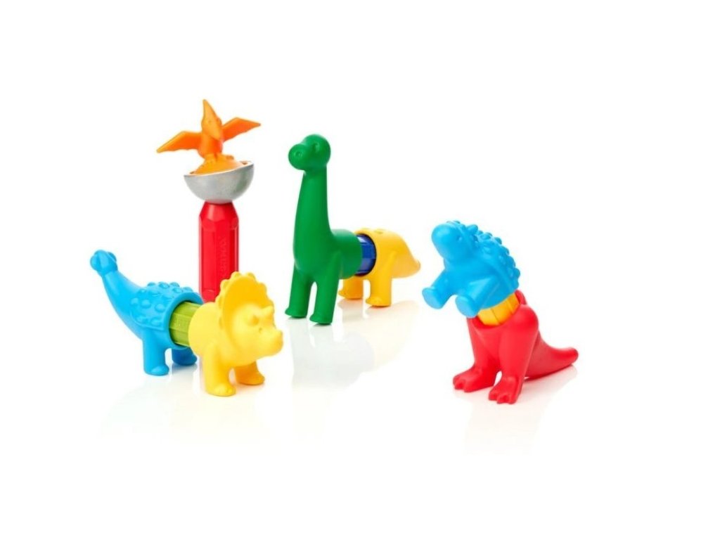 Ideálna jednoduchá stavebnica SmartMax pre malé deti od 1 roka využíva k spájaniu jednotlivých častí magnetizmus. Deti si vždy z troch častí postavia 5 dinosaurov. Ďaľšie krásne hravé magnetky do rodinky SmartMax. Zvieratá sa skladajú z troch dielov, na tyčku deti navlečú prednú a zadnú čast tela. Můžu si tak vytvárať zvieratá reálne alebo diely rôzne zmiešať a vytvoriť tak zvieratá fantastické. Dieliky sú dostatočne veľké, príjemné a jednoduché na manipuláciu. Balenie obsahuje celkovo 14 dielikov.